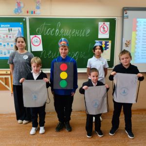 В конце мероприятия первоклассники произнесли клятву пешеходов и получили светоотражающую сумку.