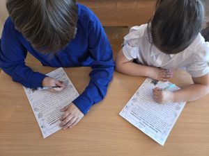 Ребята переписывали исходный текст каллиграфически правильно, соблюдая все правила наклона, пропорций и соединений букв.