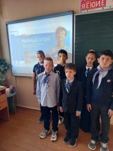 Ребята с интересом слушали о перспективных направлениях науки и техники, связанных с атомными технологиями; о безопасном применении атомной энергии и об её роли в устойчивом развитии человечества.