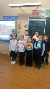 В ходе получасовой эвристической беседы ученики 1-4 классов выяснили, кто такой герой, какими качествами он должен обладать. Школьники познакомились с презентацией, посвященной героям разных исторических эпох. Ребята пришли к выводу, что героизм не связан с возрастом и профессией, он определяется личными качествами человека. Они прослушали песню «Гимн Героев Отечества».