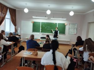 Старшеклассники просмотрели фрагмент выступления Президента России В. В. Путина на «Восточном экономическом форуме», видеоролик «30 лет тому вперёд» и обсудили роли молодого поколения в формировании будущего России и мира. Образ будущего России – сильное, независимое государство, заботящееся о своих гражданах любого возраста, осваивающее труднодоступные территории, развивающее инфраструктуру и инновационные технологии. Образ человека будущего – профессионал в своей области, работающий на развитие России, продвижение традиционных российских нравственных и семейных ценностей, русской культуры. Образ будущего мира – многополярность, справедливое использование мировых ресурсов для развития мировой экономики.