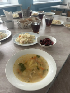 Имеется собственная столовая, с обеденным залом на 50 посадочных мест.